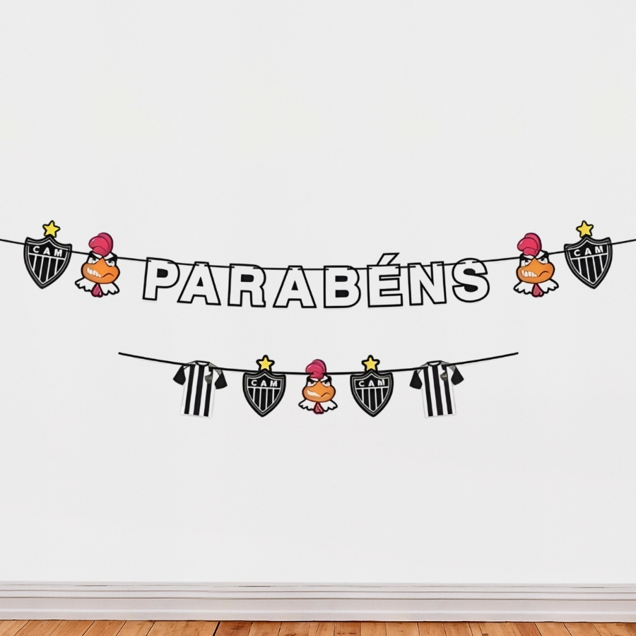 A Faixa Decorativa Temática “Parabéns” Atlético Mineiro 150x12cm é produzida em material resistente, com impressão nítida e cores bem definidas. Fácil de aplicar, é ideal para festas temáticas, comemorações esportivas e decorações personalizadas que valorizam o Atlético Mineiro.