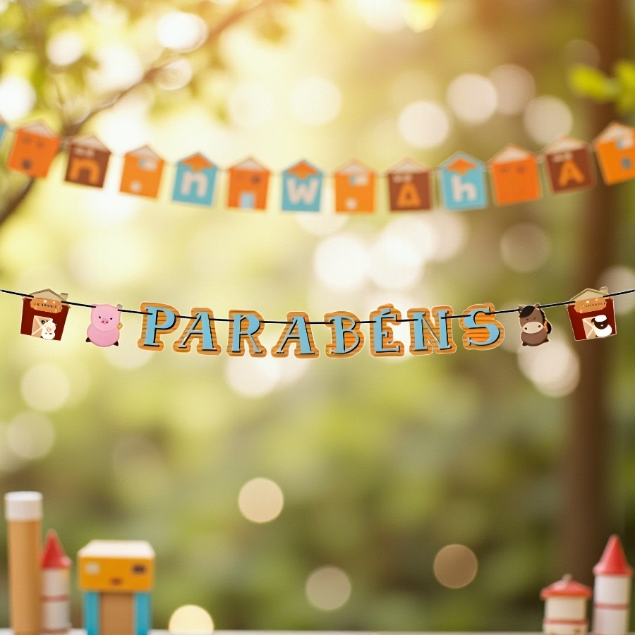 Produzida em material resistente e de alta qualidade, a faixa é fácil de instalar em paredes, painéis ou mesas decorativas. Ela combina com outros itens da linha Fazendinha, criando uma festa temática completa, organizada e visualmente atrativa.