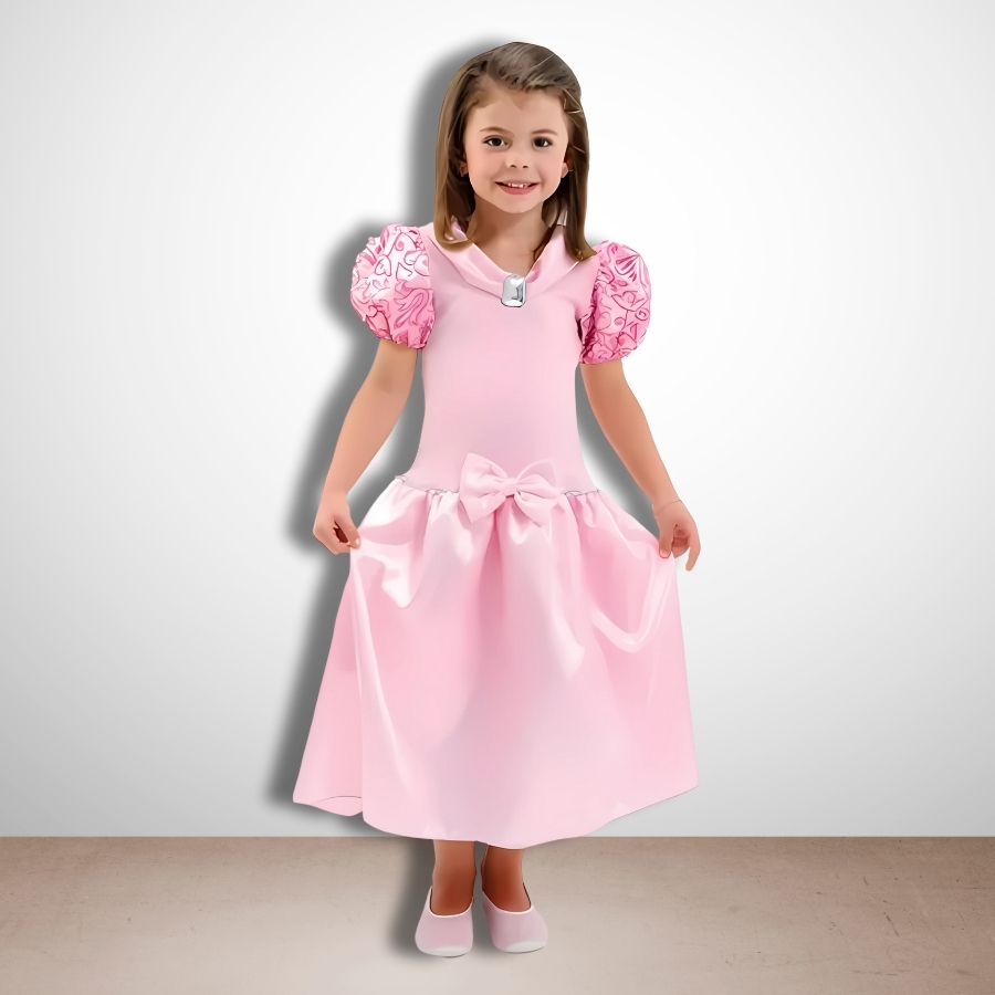 Vestido longo rosa estilo princesa para meninas a partir de 10 anos, ideal para festas e momentos de fantasia com conforto e charme.