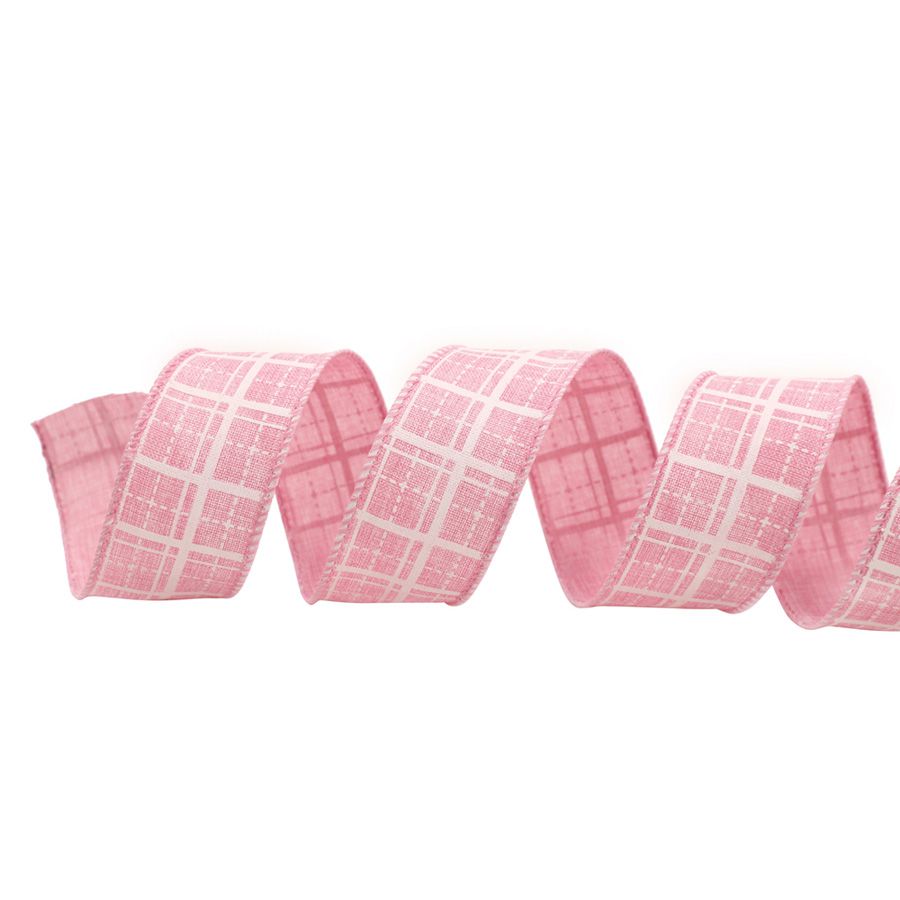 Rolo de fita em juta xadrez rosa com linhas brancas