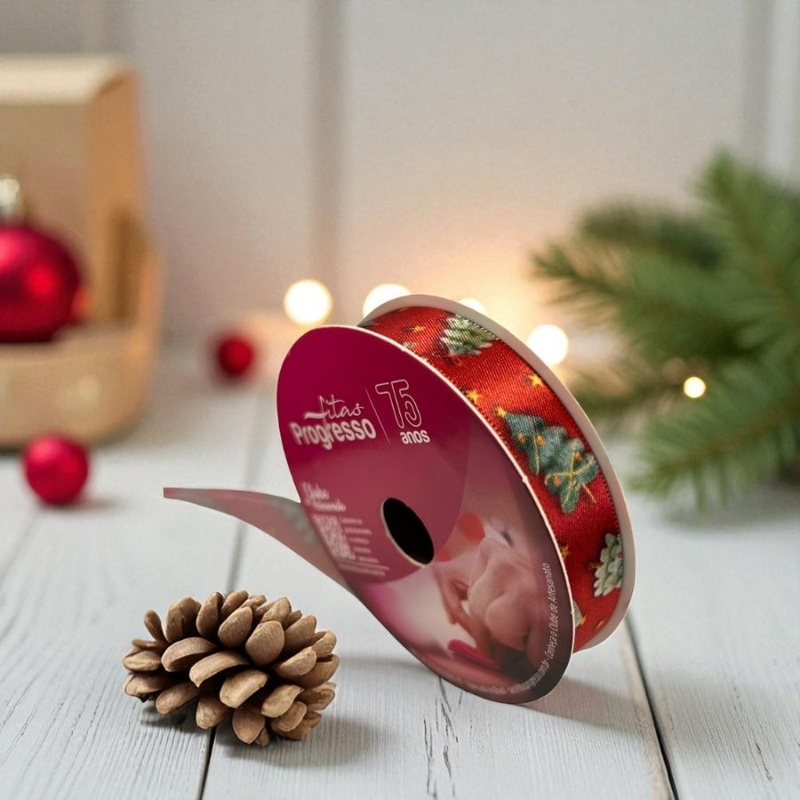 A Fita de Cetim Pinheiros de Natal Lúdicos é a escolha ideal para quem deseja criar embalagens e decorações únicas e cheias de personalidade nesta época especial.