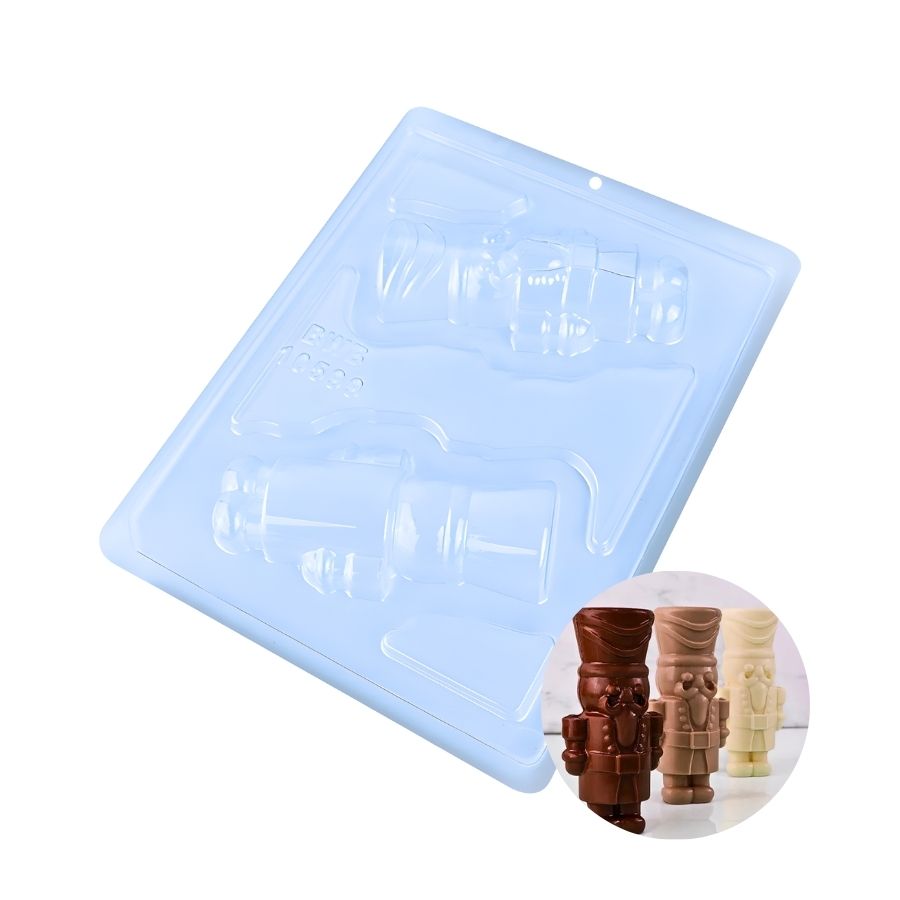 Forma especial com duas cavidades do personagem Quebra-Nozes, ideal para chocolates temáticos premium com acabamento detalhado e visual sofisticado.