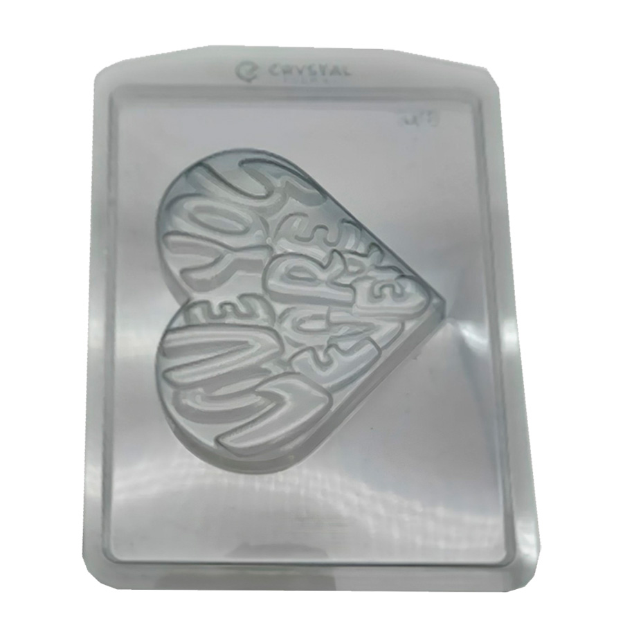 Forma de Acetato para chocolate de um coração com a mensagem "Love You Forever" Recheando todo o coração