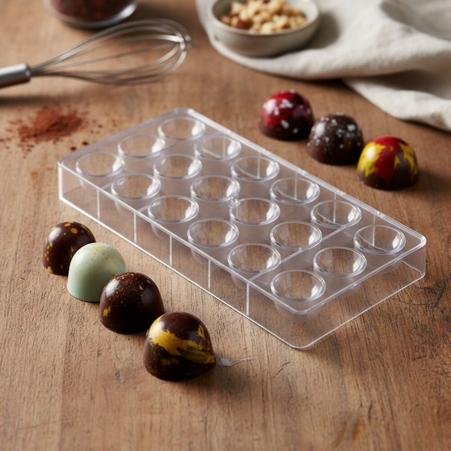Prática e eficiente, esta fôrma profissional proporciona acabamento uniforme e brilho nas trufas, além de facilitar o desenforme após a cristalização. Para utilizá-la, basta preencher as cavidades com chocolate temperado ou cobertura derretida, raspar o excesso com espátula e levar à geladeira. O resultado são bombons padronizados, fáceis de soltar e perfeitos para vendas ou kits personalizados, agregando profissionalismo e valor estético aos seus produtos.