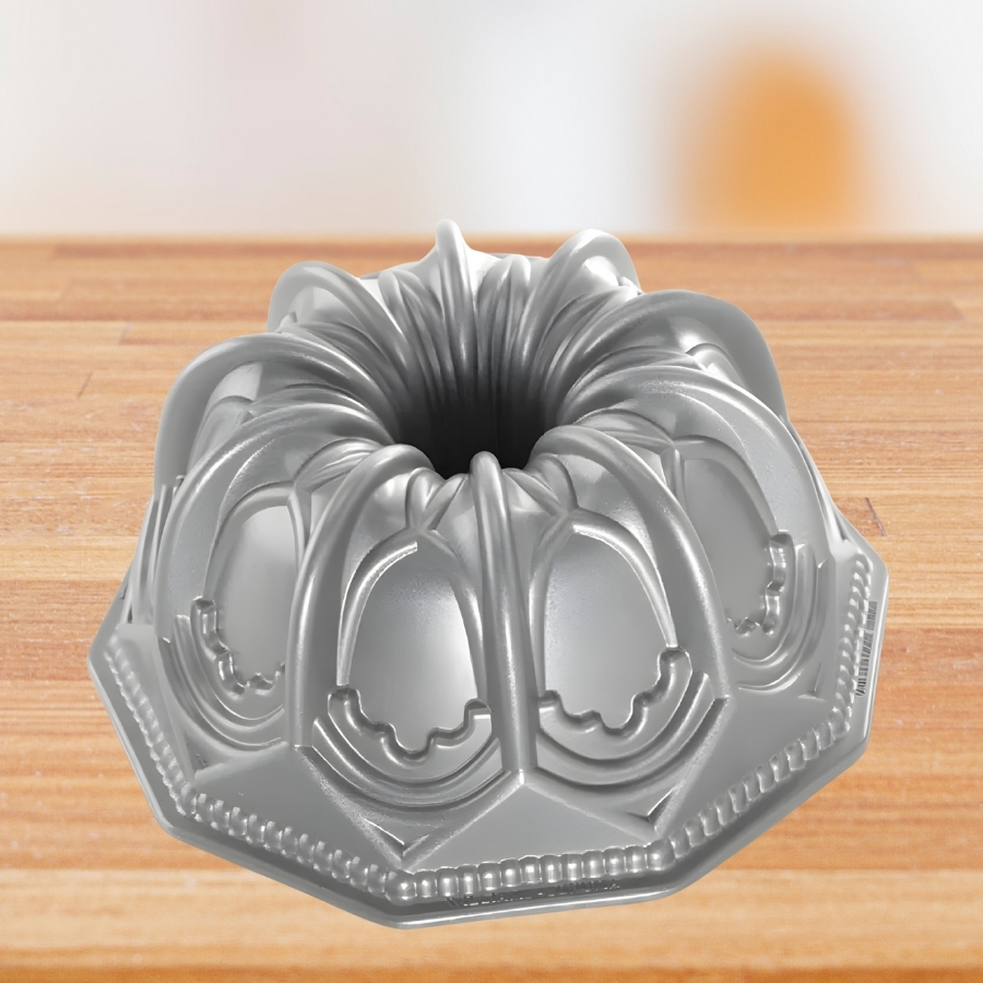 A Forma para Bolo Bundt – Catedral Abobadada – 2,13L possui formato decorativo que cria bolos com relevo detalhado. É prática, resistente e projetada para assar a massa de maneira uniforme, oferecendo um resultado visual único e ideal para apresentações especiais.
