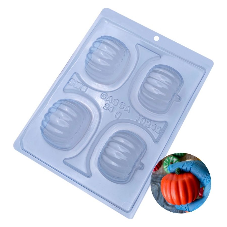 A Forma Especial de Acetato - Abóbora Média Lisa Halloween é ideal para criar chocolates temáticos com acabamento liso e elegante. Composta por 3 partes — base rígida, parte flexível de silicone e tampa moldada —, essa forma permite produzir peças ocas com alto nível de detalhamento e excelente acabamento. O modelo possui 4 cavidades, cada uma com aproximadamente 6,5x3,5cm, no formato clássico de abóbora, perfeita para o Halloween e outras decorações criativas.