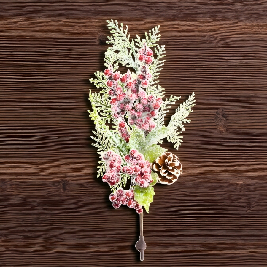 Dê um toque elegante e festivo à sua decoração natalina com o Galho Decorativo de Natal Médio – Folhas e Frutas com Neve. Combinando o charme das folhas verdes e frutas coloridas com o efeito de neve artificial, esse galho cria uma atmosfera acolhedora e sofisticada, perfeita para arranjos, guirlandas ou complementos em árvores de Natal.