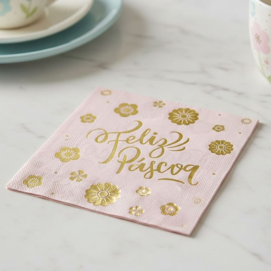 Delicado, alegre e cheio de charme, o Guardanapo de Páscoa Feliz Páscoa Rosa adiciona um toque de carinho e celebração à mesa pascal. Com visual suave e mensagem temática, ele transforma a composição da mesa em um cenário acolhedor, perfeito para celebrar a Páscoa com afeto, elegância e atenção aos detalhes.