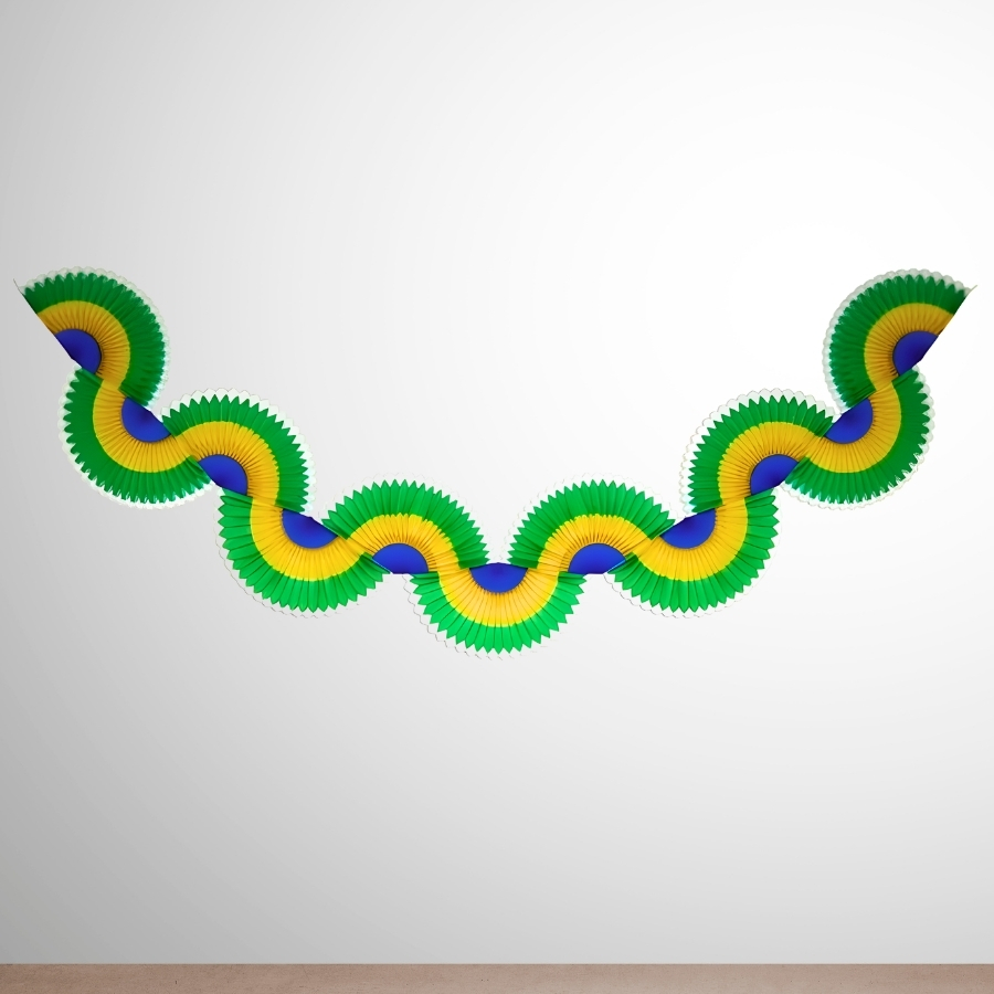 Prática e versátil, a guirlanda é fácil de pendurar em paredes, tetos, portas ou mesas, sendo indicada para escolas, clubes, torcidas e eventos corporativos que desejam destacar a temática brasileira. Ela agrega charme e personalidade à decoração, tornando qualquer espaço mais animado e festivo.