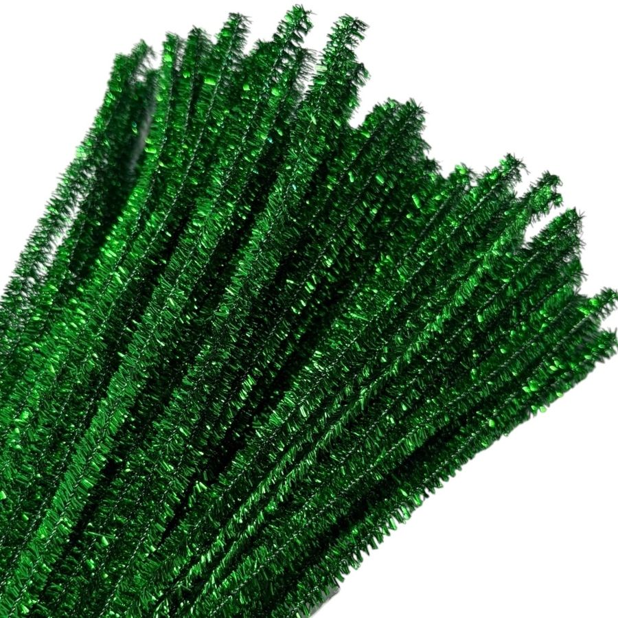 Haste de chenille verde metalizado 30cm, perfeita para enfeites, cabelo maluco, enfeites de chaveiro, lembrancinhas, festas, balões, embalagens e artesanato.