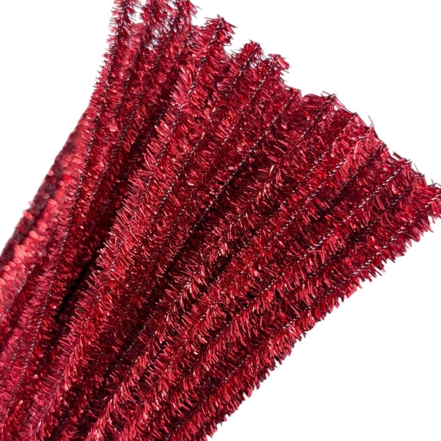 Haste de chenille vermelho metalizado 30cm, perfeita para enfeites, cabelo maluco, enfeites de chaveiro, lembrancinhas, festas, balões, embalagens e artesanato.