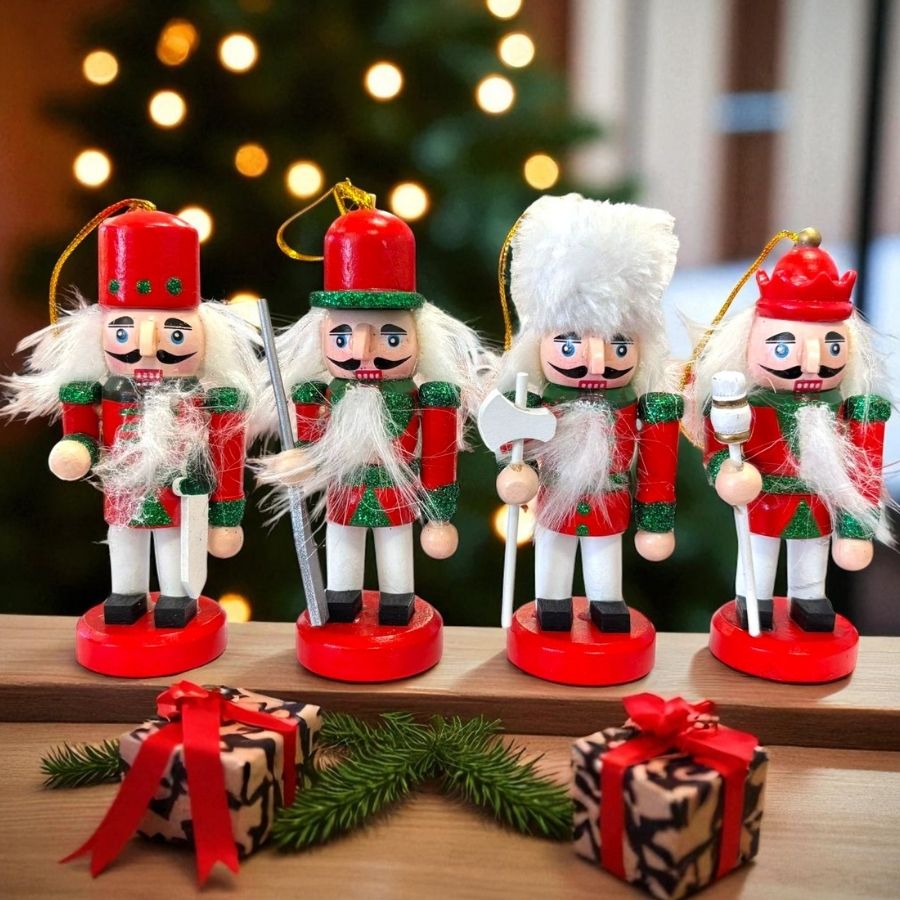 O Kit Boneco Soldado Quebra-Nozes de Madeira Vermelho e Verde 10cm com 4 unidades é um conjunto clássico e versátil, ideal para decorar árvores, mesas e ambientes, trazendo tradição, charme e sofisticação ao Natal.