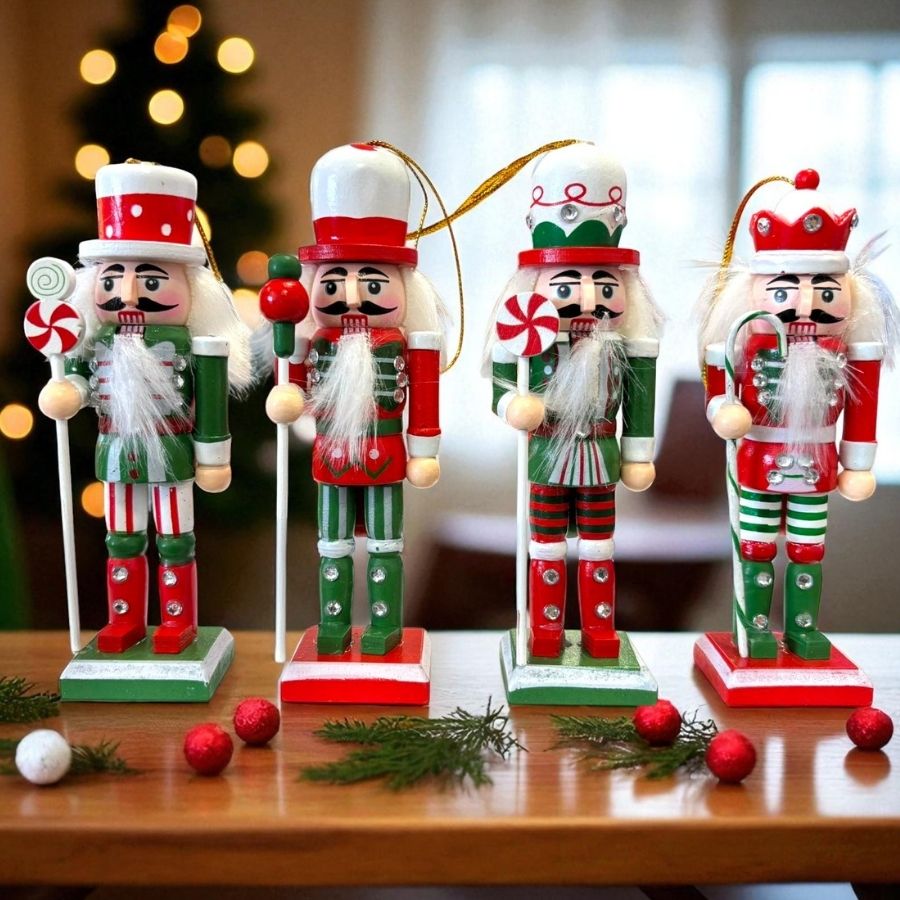 O Kit Boneco Soldado Quebra-Nozes de Madeira Vermelho e Verde 12cm com 4 unidades é um conjunto clássico e versátil, perfeito para árvores, mesas e ambientes natalinos, trazendo tradição, beleza e elegância à decoração.