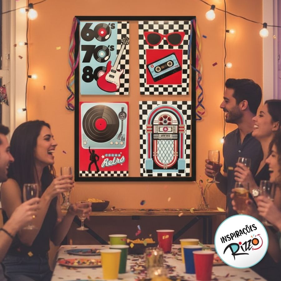 O Kit Cartaz Decorativo - Festa Retrô é o complemento perfeito para dar vida e estilo à decoração de sua festa. Com quatro cartazes coloridos e divertidos, cada um trazendo estampas inspiradas nas festas clássicas, o kit cria um ambiente alegre e temático, reforçando o charme nostálgico do estilo retrô.