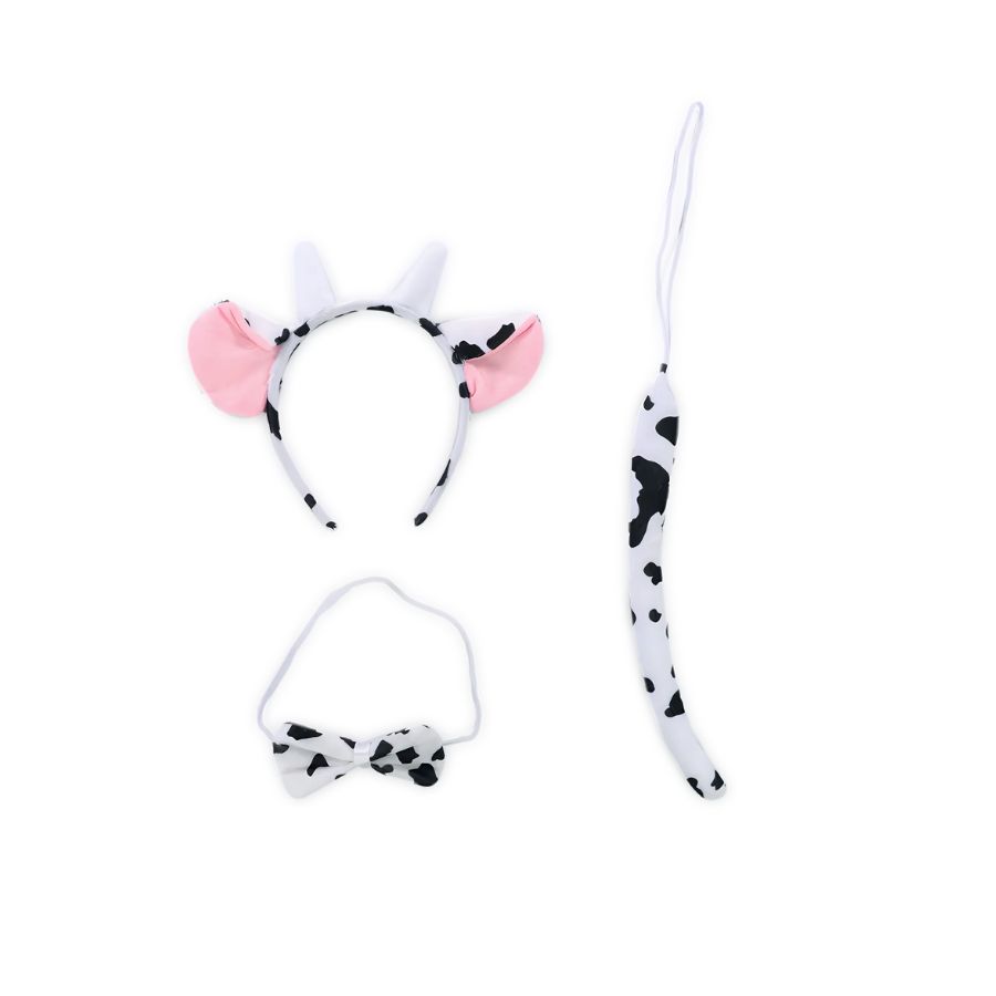 Kit fantasia de Carnaval de vaca, com tiara, gravata e rabo. Leve, confortável e ideal para festas e blocos.