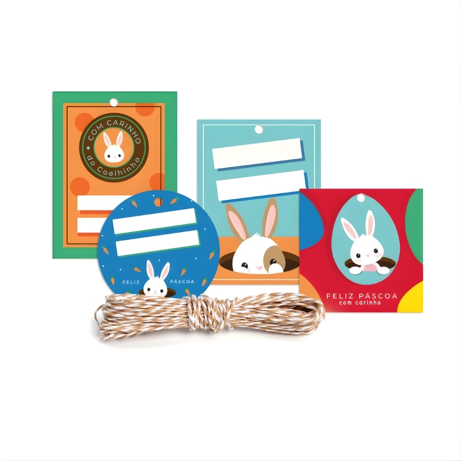 O kit inclui itens decorativos e práticos para fechamento de presentes, como fitas, tags e elementos temáticos, facilitando a personalização e garantindo acabamento bonito e seguro. É uma opção completa para tornar a Páscoa ainda mais encantadora.