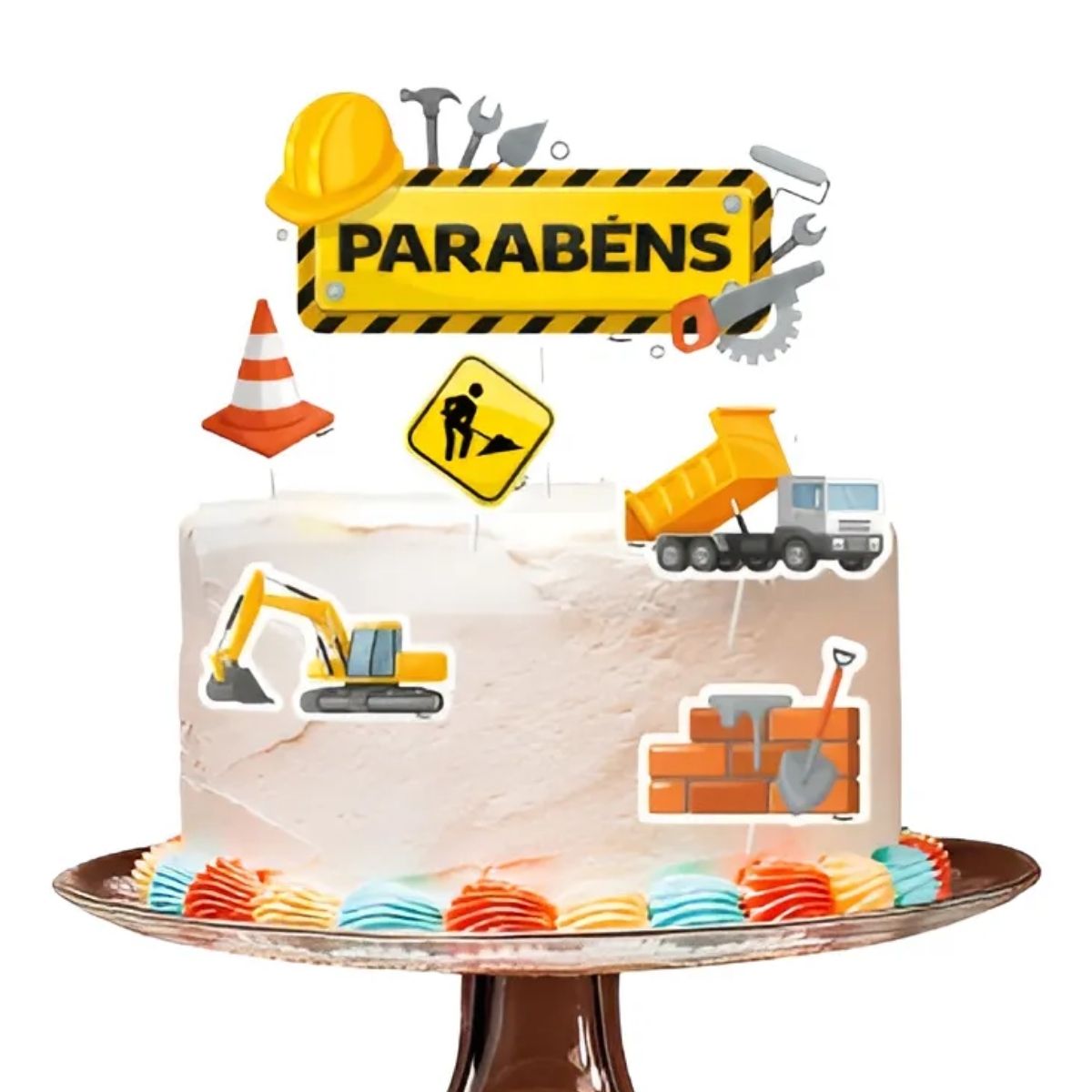 O Kit Topo de Bolo – Construção é a escolha perfeita para deixar seu bolo no clima de festa temática de construção, trazendo charme, cor e personalidade para a mesa principal. O conjunto vem com 6 unidades, sendo 1 topo maior e 5 elementos menores, todos com ilustrações de caminhões, cones de obra, placas de sinalização e outros detalhes que remetem ao universo da construção civil. As peças possuem cores vibrantes e um visual moderno, criando um destaque imediato no bolo e deixando a decoração ainda mais envolvente.