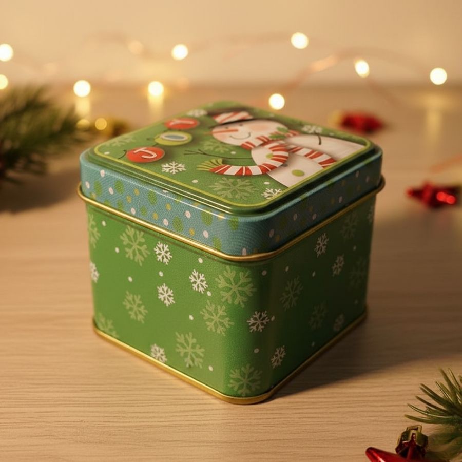 Além do design decorativo, a lata oferece durabilidade e reutilização, sendo ideal para embalagens personalizadas e projetos artesanais. Pode ser combinada com tag decorativa, fitas natalinas e outros acessórios festivos, tornando-se um item encantador e funcional para presentear ou complementar a decoração de Natal com estilo, alegria e criatividade.