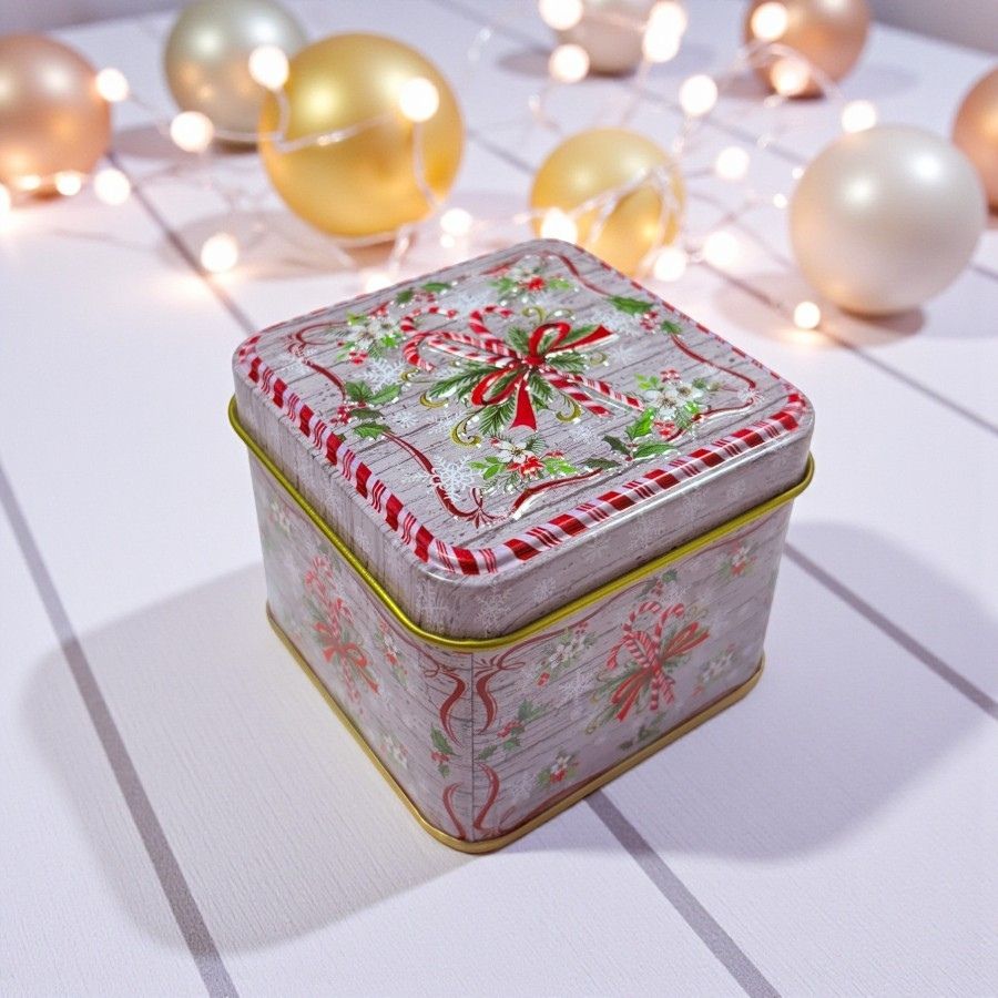 A Lata de Metal de Natal - Sugar Cane - 7,5x7x6cm é uma embalagem temática e compacta, ideal para armazenar doces, chocolates, biscoitos ou montar lembrancinhas natalinas. Produzida em metal resistente, apresenta ilustração de cana de açúcar natalina, trazendo charme e espírito festivo à decoração. Com dimensões de 7,5x7x6cm, é prática, versátil e perfeita para mesas, lembranças ou kits artesanais.