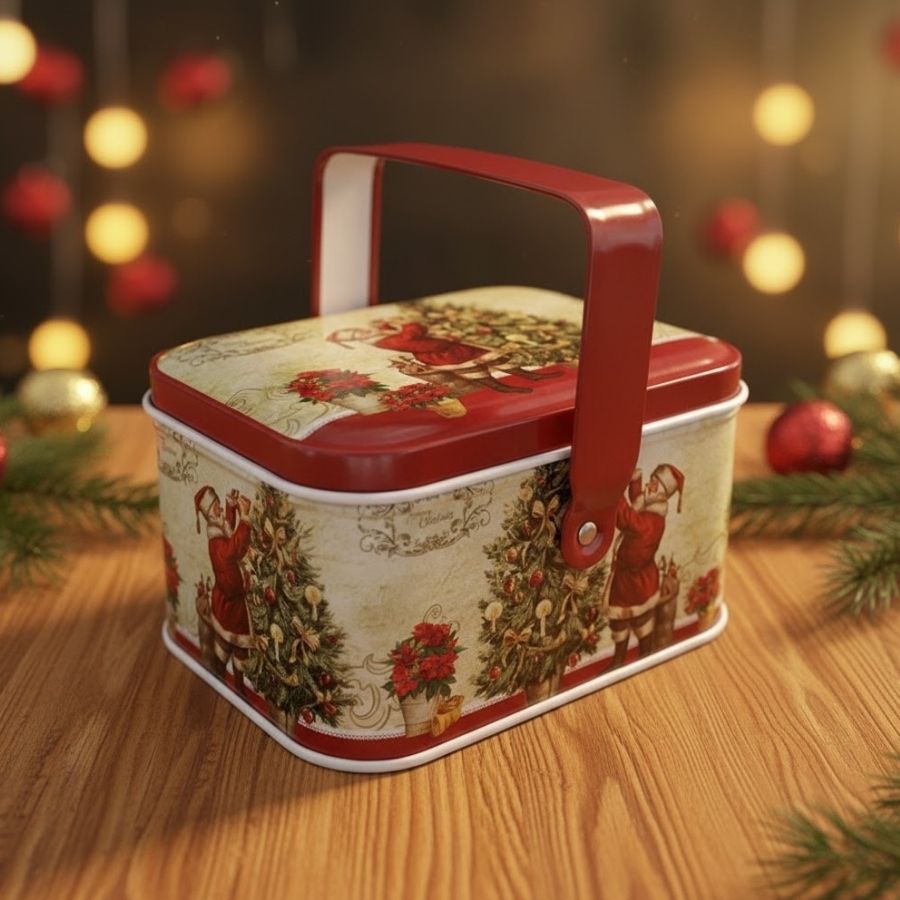 A Lata de Metal de Natal Cestinha Noel Clássico é um asset de alto valor agregado para composições sazonais, entregando apelo visual premium e narrativa tradicional que conecta imediatamente com o imaginário natalino. Produzida em metal resistente, com acabamento brilhante e formato retangular de cantos arredondados, essa embalagem posiciona seus produtos em um patamar superior de apresentação e encantamento, ideal para doces, biscoitos, pequenos presentes e kits decorativos.