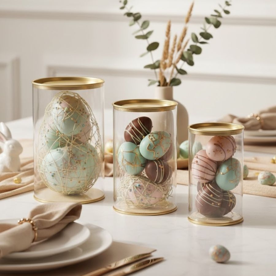 Feita em metal resistente, a lata oferece durabilidade e segurança, mantendo o chocolate protegido contra luz e umidade. Seu formato versátil permite também o uso em kits de doces, bombons, trufas ou lembranças temáticas, sendo uma excelente opção para personalizações e embalagens de Páscoa premium. O estilo clean combina com qualquer identidade visual, desde o clássico ao contemporâneo.