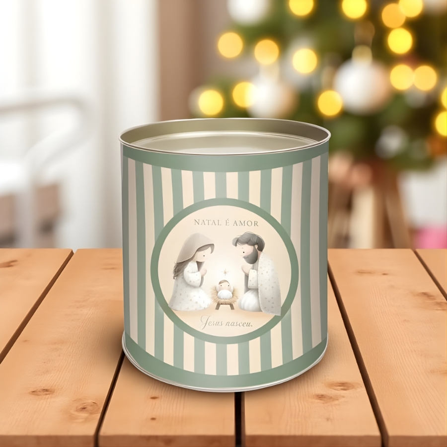 Com suas listras delicadas e acabamento refinado, essa lata combina perfeitamente com o clima natalino, sendo ideal para presentear familiares, amigos ou clientes. Além de proteger o alimento, é um item decorativo que agrega beleza e valor à mesa de Natal, podendo ser reutilizada em diferentes ocasiões.