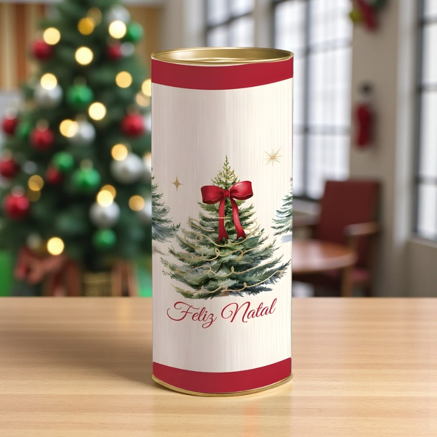 Com 10x24x10cm, esta lata rígida é resistente e prática, ideal para armazenar doces, lembrancinhas ou pequenos presentes. Uma opção charmosa e funcional para compor kits de Natal ou tornar a apresentação do presente ainda mais especial.