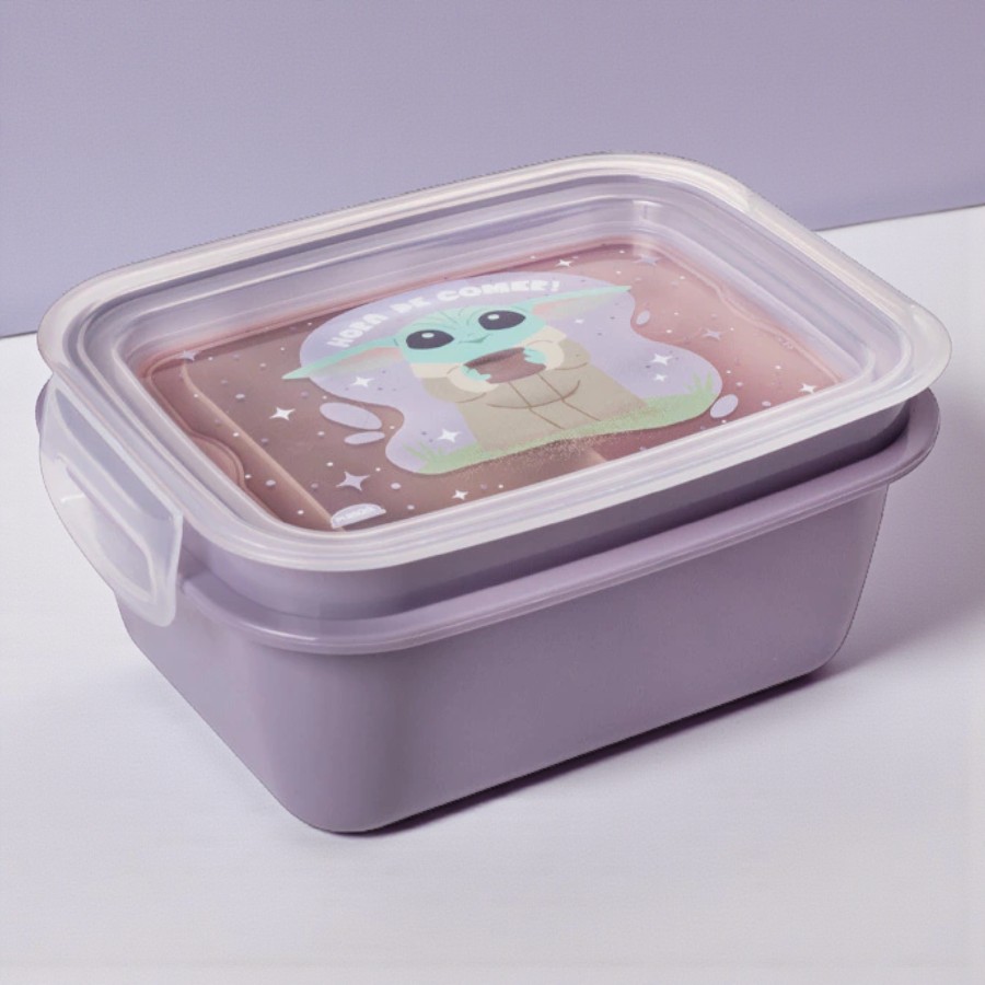Marmita hérmetica com divisória removivel inspirada no personagem Grogu de Star Wars. Produto Licenciado.