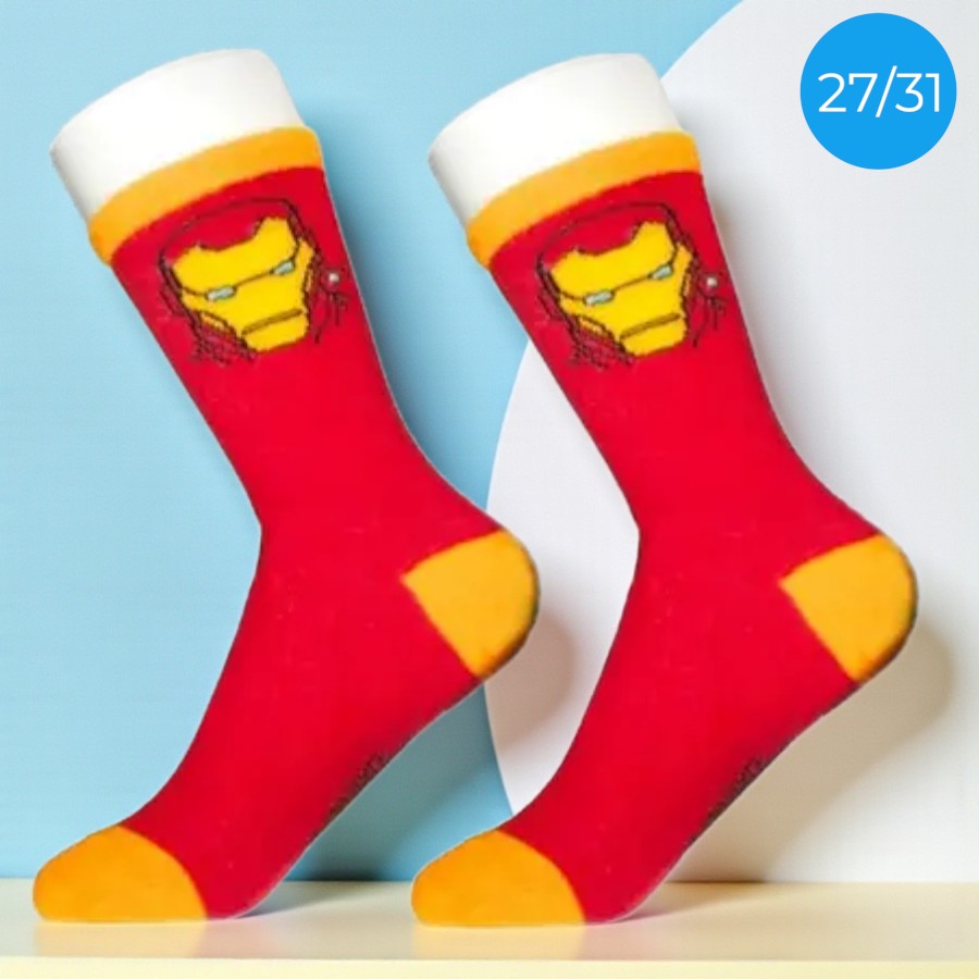 1 Par de Meias Infantil cano médio com estampa inspirada personagens Marvel. Produto licenciado.