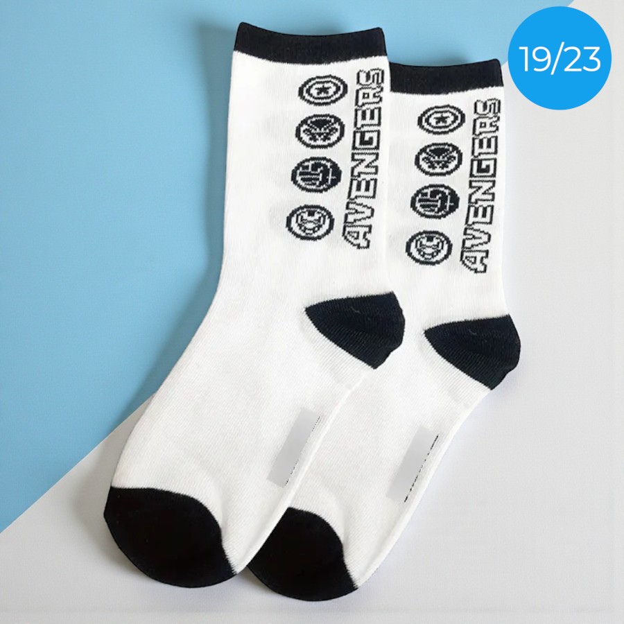 A Meia Infantil Cano Médio Vingadores combina estilo e conforto em uma peça perfeita para os pequenos fãs dos heróis Marvel Disney. Com design branco e detalhes em preto, ela traz um visual moderno inspirado no universo dos Vingadores, ideal para o dia a dia, escola ou momentos de diversão.
