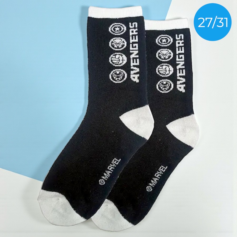 1 Par de Meias Infantil cano médio com estampa inspirada personagens Marvel. Produto licenciado.