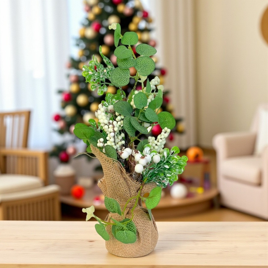 Adicione um toque delicado e festivo à sua decoração natalina com a Mini Árvore Decorativa de Plástico com Frutinhas Brancas. Ideal para mesas, aparadores ou cantinhos especiais, ela traz charme, leveza e um clima aconchegante para qualquer ambiente.