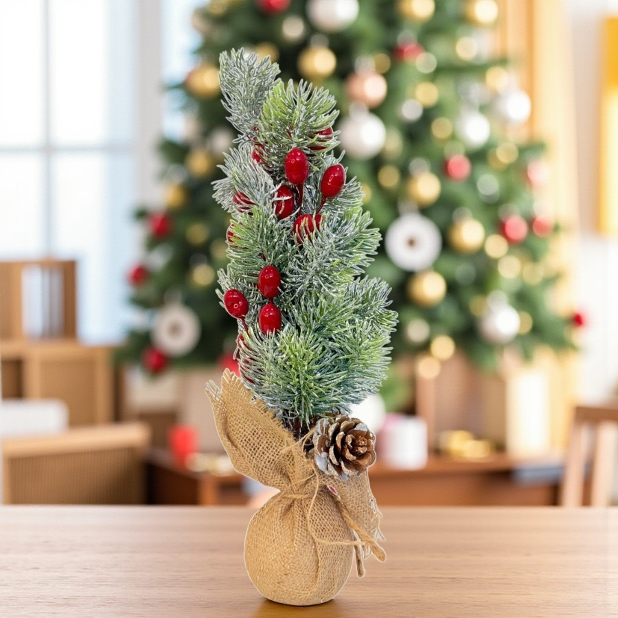 Adicione charme e estilo à sua decoração natalina com a Mini Árvore Decorativa de Plástico com Pinha e Frutinhas. Ideal para mesas, aparadores ou cantinhos especiais, ela traz um toque natural e festivo, tornando qualquer ambiente mais aconchegante e elegante.