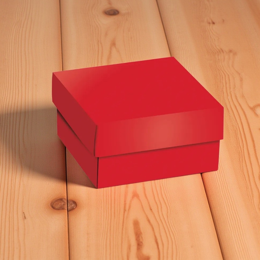 Mini caixa quadrada na cor vermelha, modelo Charming Red. Indicada para lembrancinhas, presentes pequenos, doces e acessórios, trazendo elegância e praticidade para diferentes ocasiões.