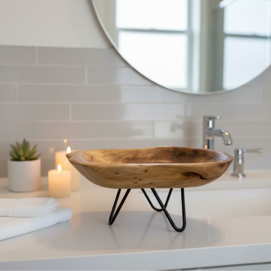 A Mini Mesa de Madeira Rústica Orgânica - 25,5x21,5x11cm é uma peça de Home Decor que funciona como uma bandeja elevada com pés, ideal para valorizar a decoração de mesas, aparadores, bancadas ou estantes. Ela transforma os ambientes em espaços mais bonitos, organizados e acolhedores, criando níveis e destaque para vasos, velas, objetos decorativos ou pequenas composições. Seus detalhes artesanais conferem um toque de estilo rústico e natural.