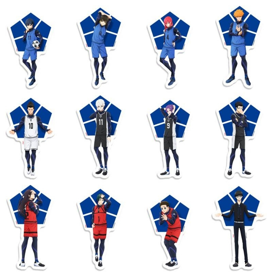 Mini personagens decorativos Bluelock, medindo 5x9,5cm. Produto ideal para mesas de doces, bolos, lembrancinhas e ambientes festivos, proporcionando um toque de diversão e temática ao evento.