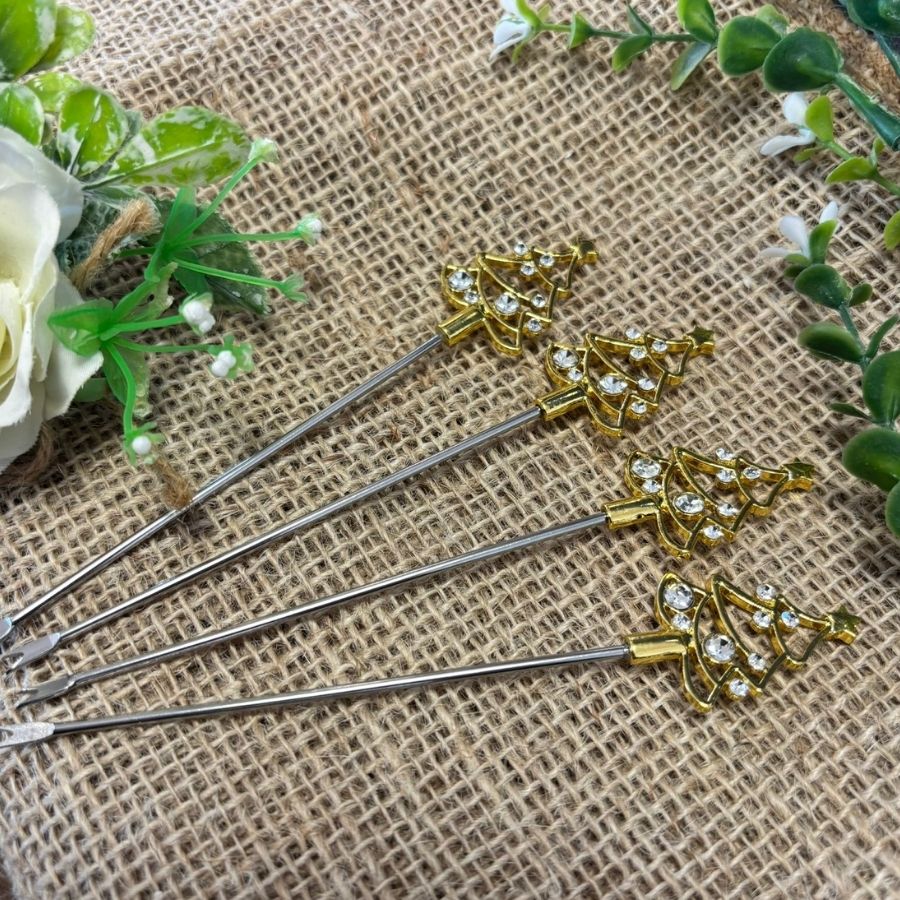 O Kit Palitinho de Fondue - Árvore de Natal Dourada - 13,5cm é um conjunto charmoso e prático, ideal para festas e celebrações natalinas. Cada palitinho é decorado com uma mini árvore de Natal dourada no topo, trazendo charme, sofisticação e um toque festivo às suas sobremesas, como fondues de chocolate, frutas ou petiscos.