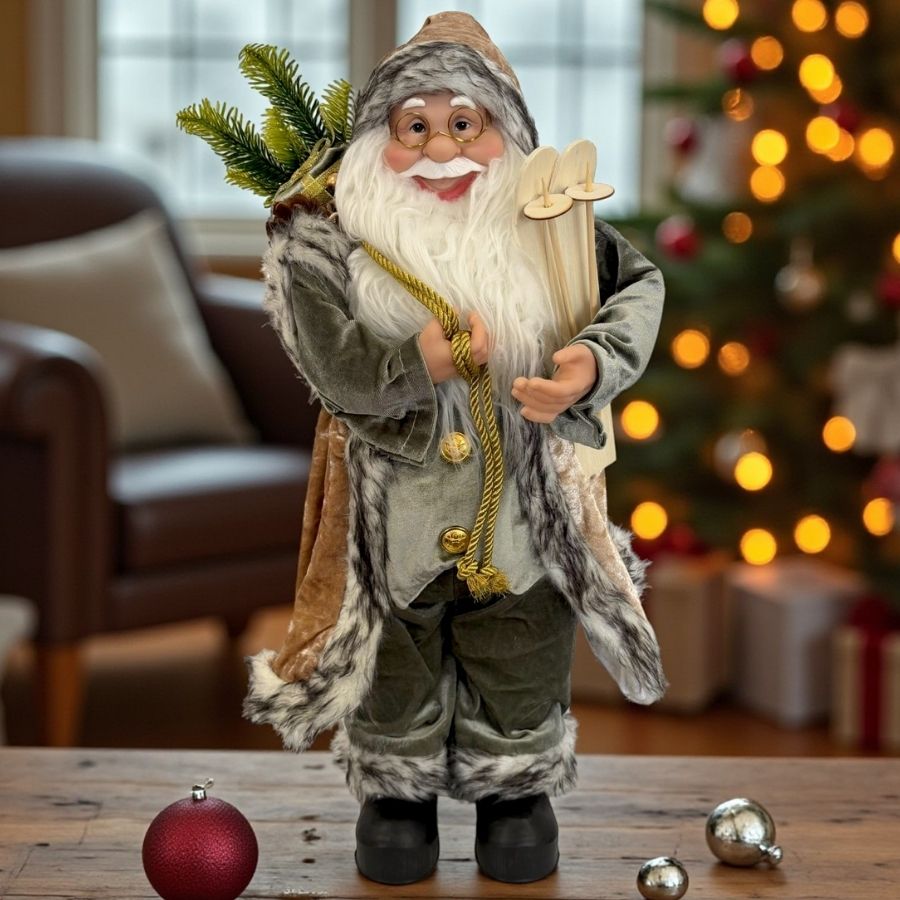 Com 60cm de altura, é ideal para decorar salas, aparadores, mesas, vitrines ou ao lado da árvore de Natal. Seu design detalhado e cores sofisticadas permitem combinações harmoniosas com decorações clássicas, rústicas ou modernas, tornando o ambiente mais festivo e acolhedor.