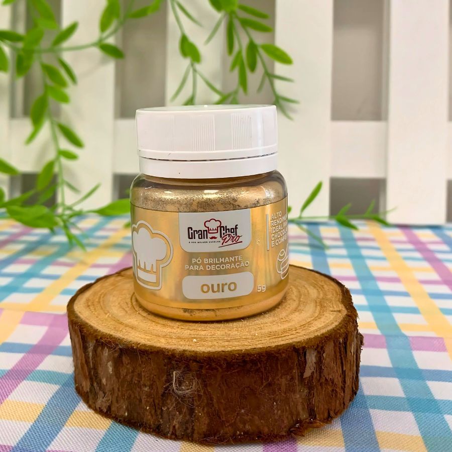 Esse pigmento mineral inorgânico de origem natural é livre de cheiro e gosto, sendo seguro para uso alimentício. Para utilizá-lo, basta dissolver 6g em 4ml de água, misturar bem, incorporar ao ganache ou glaçage e aplicar sobre a sobremesa. O resultado é um brilho dourado elegante que destaca qualquer criação.