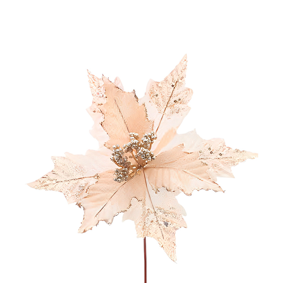 Ideal para arranjos de Natal e outras decorações sazonais, a poinsettia com glitter traz um toque de brilho e elegância. Seu design natural e detalhado, combinado com o efeito cintilante do glitter, faz dela uma escolha perfeita para criar um ambiente festivo e encantador.