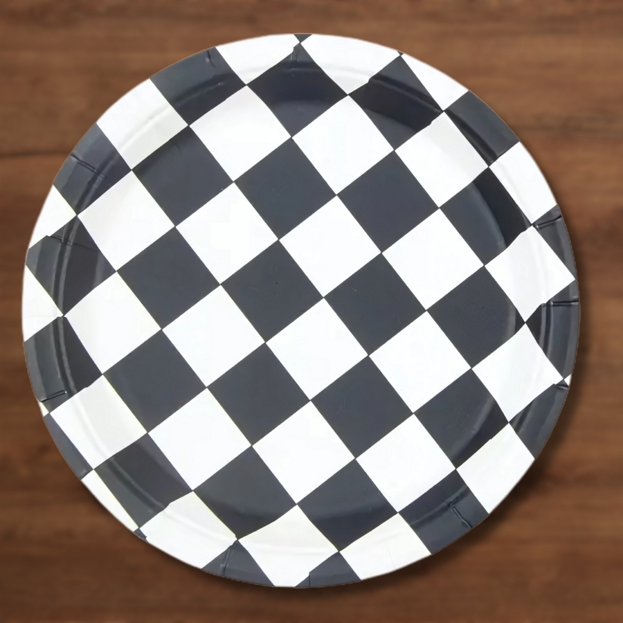 O Prato de Papel Redondo Biodegradável Xadrez Preto - 18cm é uma excelente opção para festas com temática elegante e ecológica, garantindo praticidade e sustentabilidade.