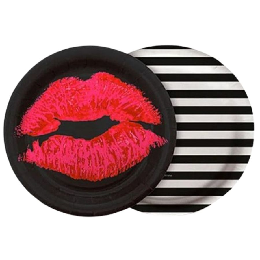 O Prato Redondo de Papel para Despedida de Solteira é perfeito para animar a sua festa com estilo e praticidade. Com 19x19cm, esses 8 pratinhos na cor preta trazem uma estampa exclusiva de um beijo grande no centro, em tom rosa avermelhado, que adiciona um toque divertido e sensual ao evento. Ideal para servir petiscos, salgadinhos, doces e outras delícias, eles combinam com a temática da festa e facilitam a organização do evento.
