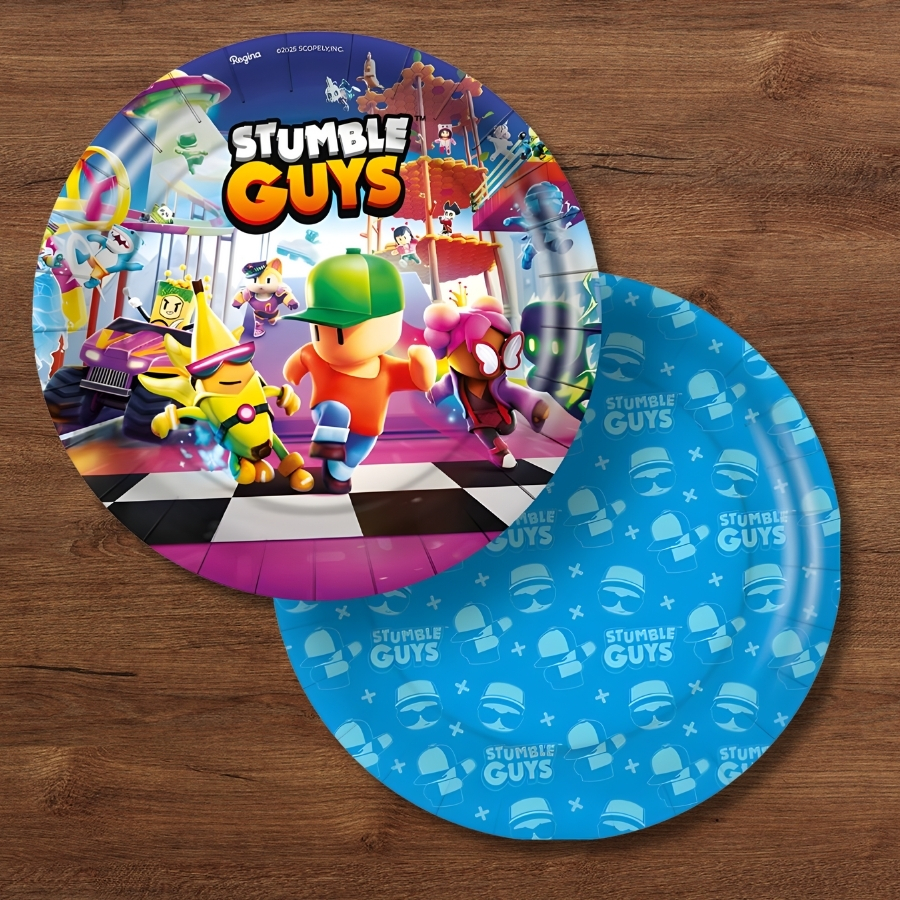 Perfeito para aniversários infantis, o prato Stumble Guys é prático, resistente e combina com outros itens da linha, como copos, adesivos e cachepots. Ele contribui para uma decoração harmoniosa e divertida, garantindo que todos os detalhes da mesa sigam a temática do evento.