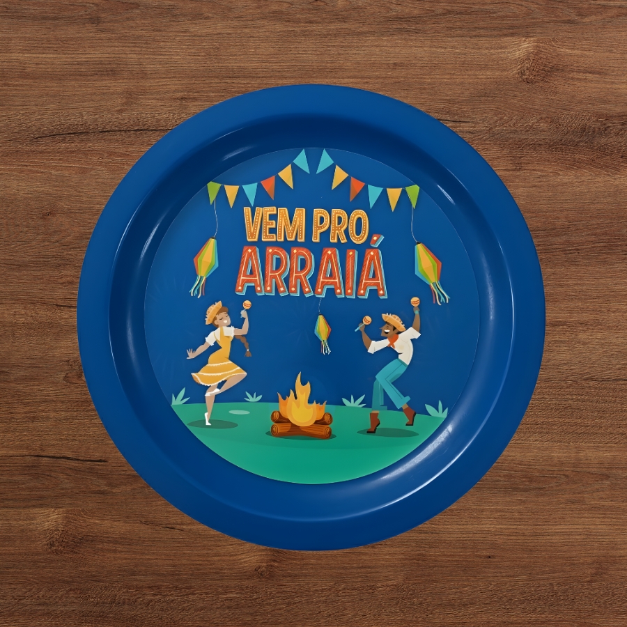 Com medidas de 26x26cm, esse prato redondo oferece espaço adequado para servir doces, salgados e pratos típicos de festa junina. Ele resolve a necessidade de um item prático e decorativo, sendo indicado para quem busca facilitar o serviço e manter a decoração alinhada ao tema de São João.