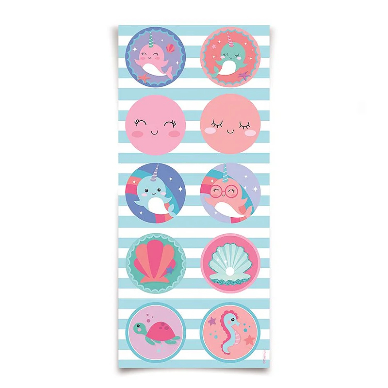 Utilize o Adesivo Redondo Festa Narval para colar nas lembrancinhas, latinhas e personalizados de sua festa.