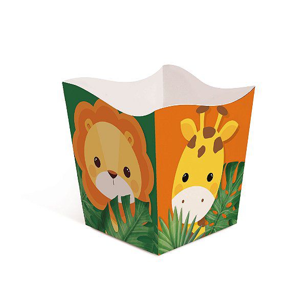 Utilize o Cachepot Festa Safari para colocar na mesa de comes e bebes, na mesa principal com docinhos e marshmallows ou na mesa dos convidados com salgadinhos ou decoração.