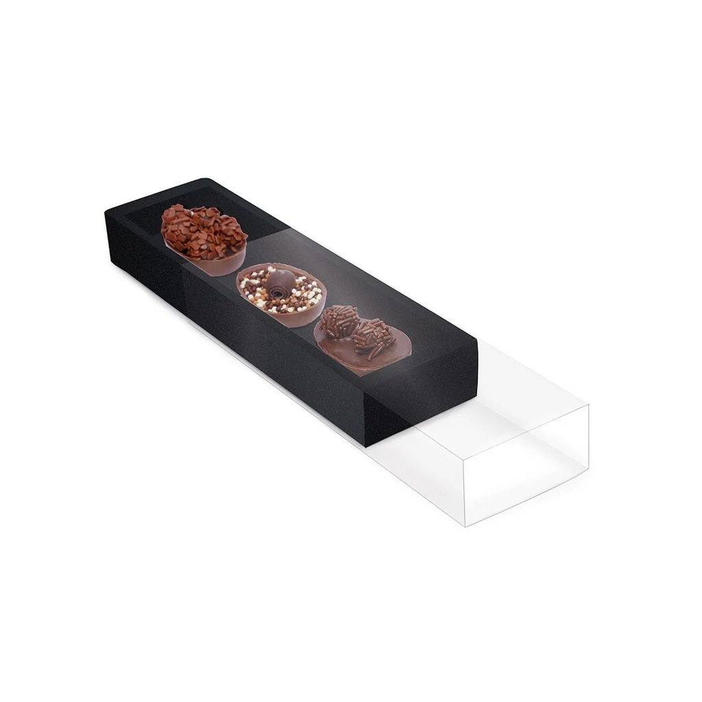 Caixa Luva para Três Meio Ovos 50g Páscoa Preto - 10 unidades - 26,5x7,5x3,5cm - Cromus Profissional - Rizzo Embalagens