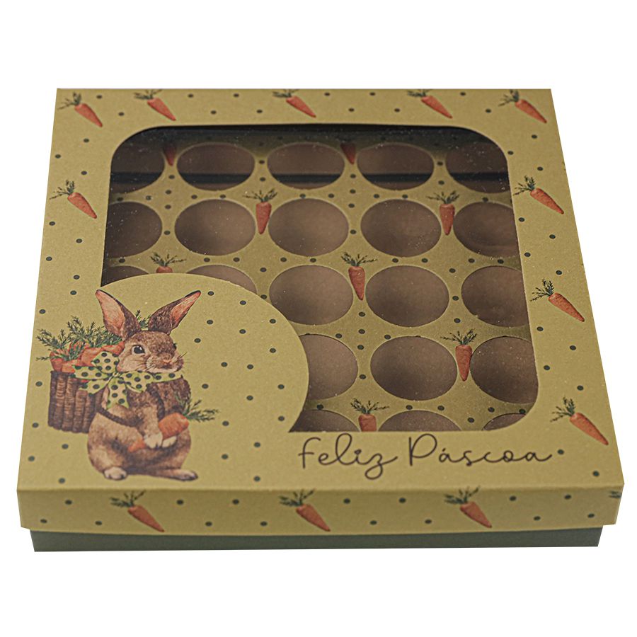 Caixas para Doces de Páscoa são uma ótima opção para presentear nessa páscoa, embalagens de páscoa lindas e únicas para presentear com estilo. A Caixa para Doces Kraft Elegance possui berço com 25 cavidades para acomodar os docinhos perfeitamente. É linda e pratica para presentear.A Páscoa é uma das tradições mais importantes do ano e a Rizzo preparou uma coleção incrível desde coelhos decorativos, cenouras, embalagens de páscoa e muito chocolate. Esse é um momento muito gostoso de reunião entre a família e amigos mais próximos para celebrar e compartilhar, e você não pode ficar de fora dessa.