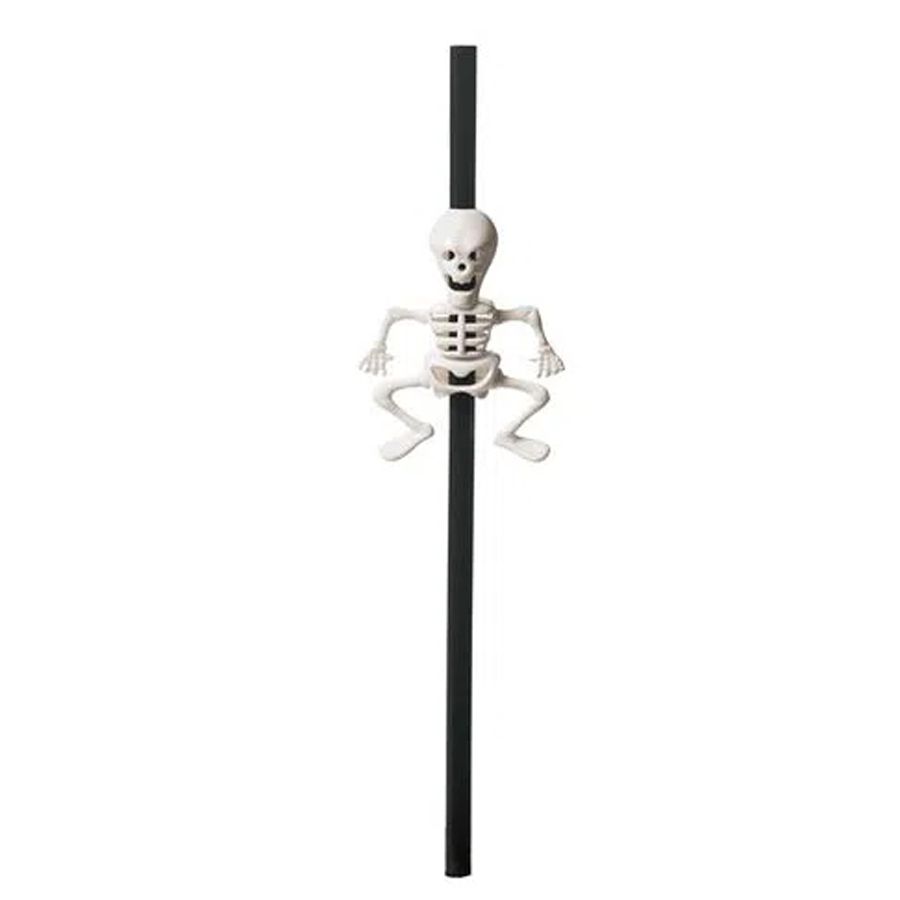 Canudo Halloween, Que tal dar uma estilizada no seu drink? Não tem quem resista a este charme. Ambos são de plástico, mas o esqueleto é rígido, duro.