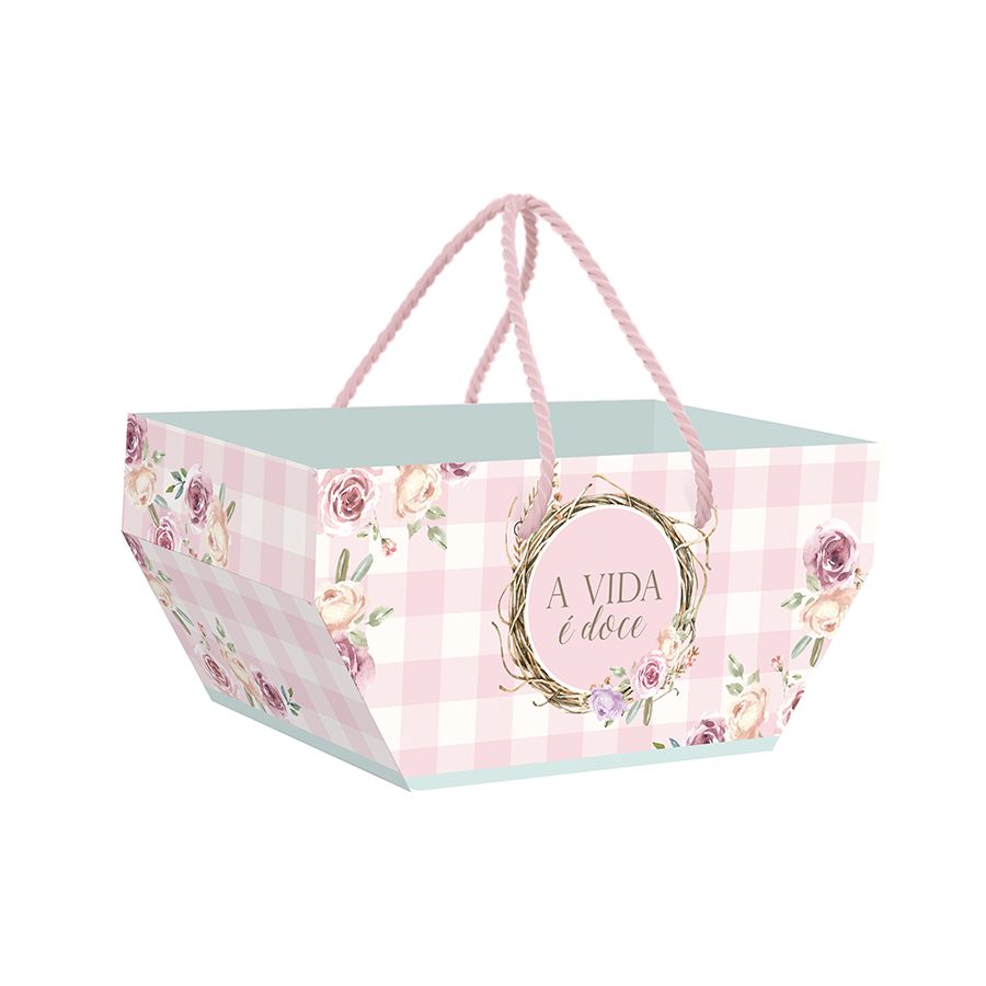 A Coleção Serena é Romântica e com olhar encantador. A proposta da pintura em aquarela traz pinceladas de leveza, gerando a sensação que a vida sempre pode ser doce. A Caixa Cesta com Alça é uma super novidade também conhecida como Cesta na Caixa, Cesta de Papel, entre outros. Com impressão frente e verso, a cesta é uma ótima opção para montar um kit e fazer uma surpresa incrível! Sugestar para montar o kit: Caixa com Bombons, chocolates, doces, biscoitos, sucos de caixinha, pelúcias.